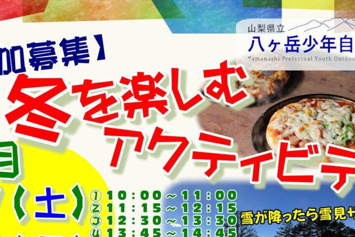 ◆目 的:自然の家の持つ環境の特性を活かし、冬の時期でも楽しめるアクティビティを体験することから、様々な季節での自然の家の利用促進を図るとともに、幅広い層への自然の家の認知を高め、今後の利用向上を目指す。