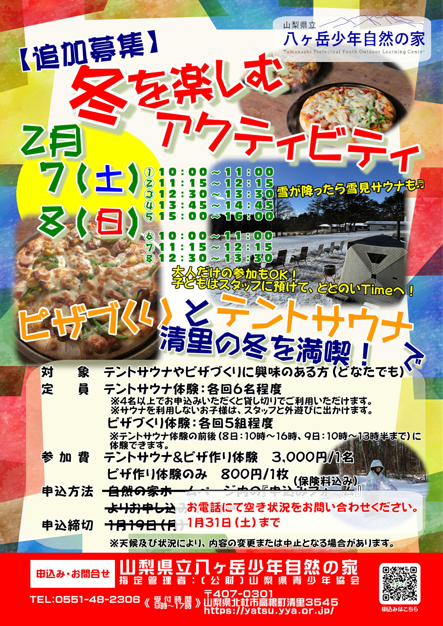 → 1/31(土)まで 電話(0551-48-2306)で空き状況をお問い合わせください。