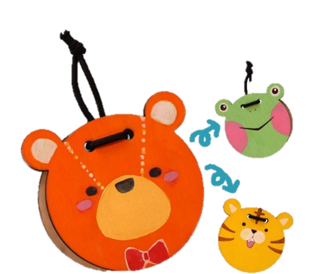 カット加工された木の板から部品を抜いて、自由に色を塗り、組み立ててカスタネットを作ります。